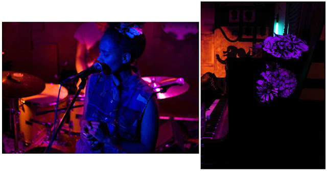 Here's some photos of the work I did. I took some time to draw in response to Hejira's music and created a stage set as well as some badges for them to wear on the night.
